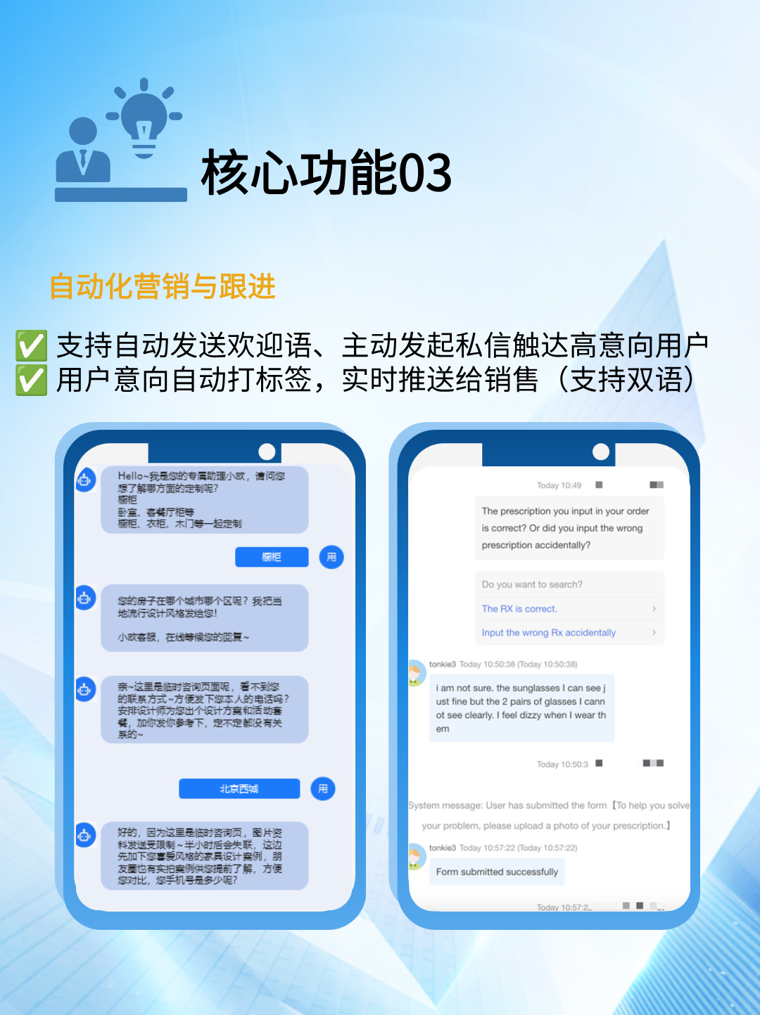 用户意向自动打标签,实时推送给销售跟进,缩短成交路径